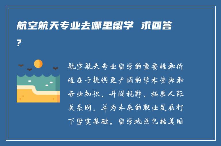 本文导读:航空航天专业留学的重要性和价值在于提供更广阔的学术资源和专业知识,开阔视野、拓展人际关系网,并为未来的职业发展打下坚实基础。留学地点包括美国、加拿大、欧洲和澳大利亚等。