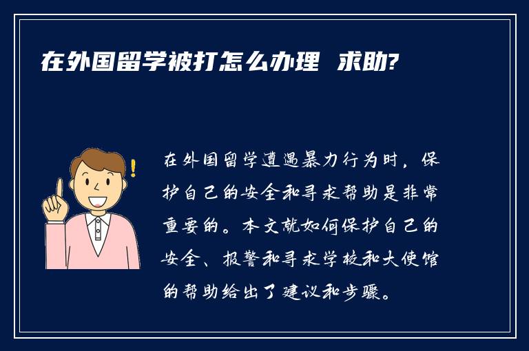 本文导读:在外国留学遭遇暴力行为时,保护自己的安全和寻求帮助是非常重要的。本文就如何保护自己的安全、报警和寻求学校和大使馆的帮助给出了建议和步骤。