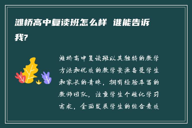 本文/问答《滩桥高中复读班怎么样 谁能告诉我?》由湖南长沙复读网www.chengkaohui.com收集整理,网友“动感光波,bbbb--”分享提供,如有内容不符,或者其它建议可以联系咨询15274855379(微信同号)