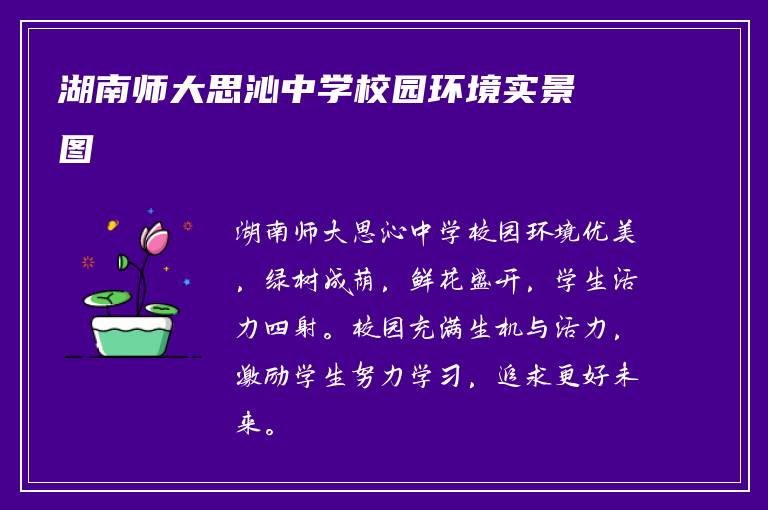 本文导读:湖南师大思沁中学校园环境优美,绿树成荫,鲜花盛开,学生活力四射。校园充满生机与活力,激励学生努力学习,追求更好未来。
