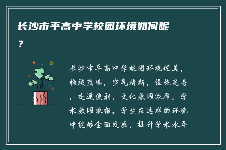本文导读:长沙市平高中学校园环境优美,植被茂盛,空气清新,设施完善,交通便利,文化氛围浓厚,学术氛围浓郁。学生在这样的环境中能够全面发展,提升学术水平。