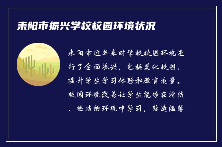 总的来说,耒阳市振兴学校校园环境状况的举措,不仅提升了学生的学习体验,也促进了学校教育的发展。只有在一个优美、舒适的环境中学习,学生才能更好地成长和发展。