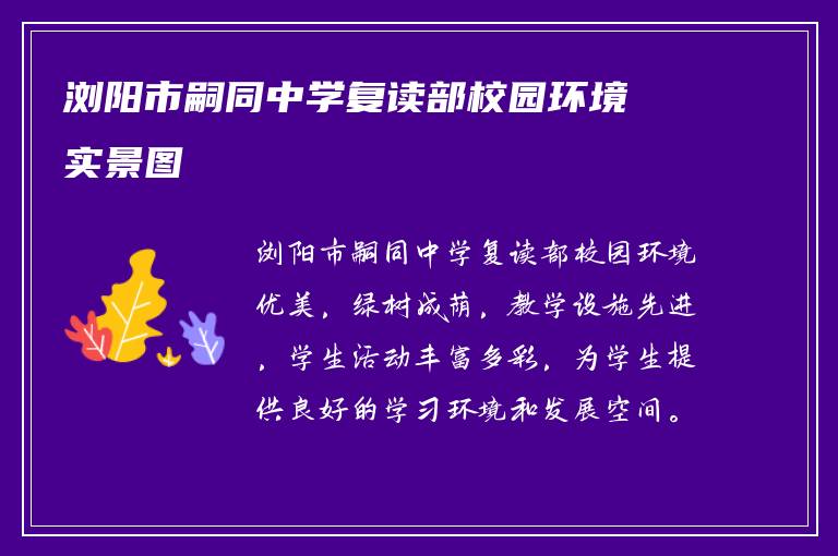 本文导读:浏阳市嗣同中学复读部校园环境优美,绿树成荫,教学设施先进,学生活动丰富多彩,为学生提供良好的学习环境和发展空间。
