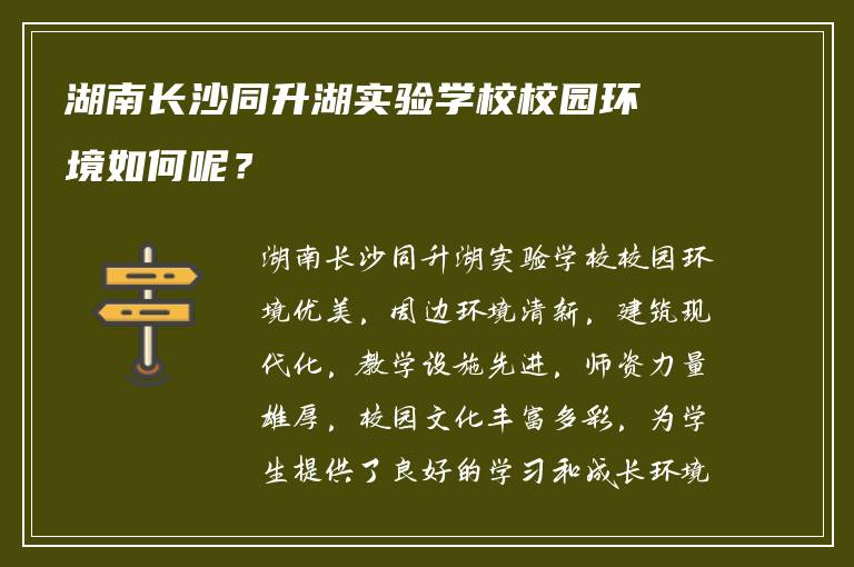 本文/问答《湖南长沙同升湖实验学校校园环境如何呢?》由湖南长沙复读网www.chengkaohui.com收集整理,网友“久而旧之”分享提供,如有内容不符,或者其它建议可以联系咨询15274855379(微信同号)