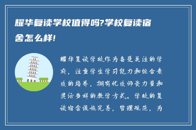 本文/问答《耀华复读学校值得吗?学校复读宿舍怎么样!》由湖南长沙复读网www.chengkaohui.com收集整理,网友“疯人愿”分享提供,如有内容不符,或者其它建议可以联系咨询15274855379(微信同号)
