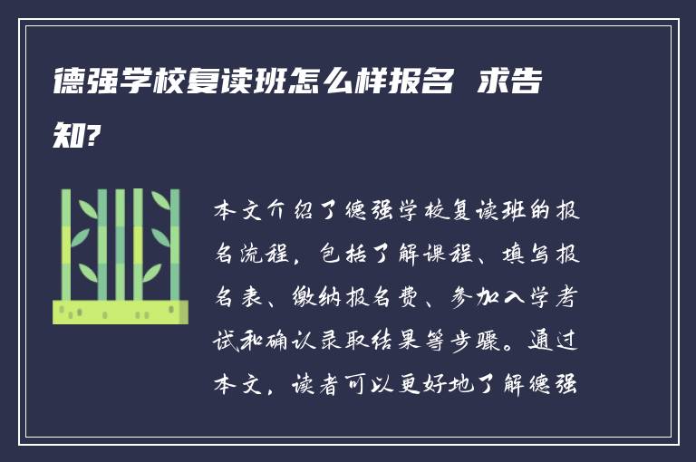 希望以上内容能帮助你更好地了解德强学校复读班的报名流程,祝愿你能在德强学校取得优异的成绩!