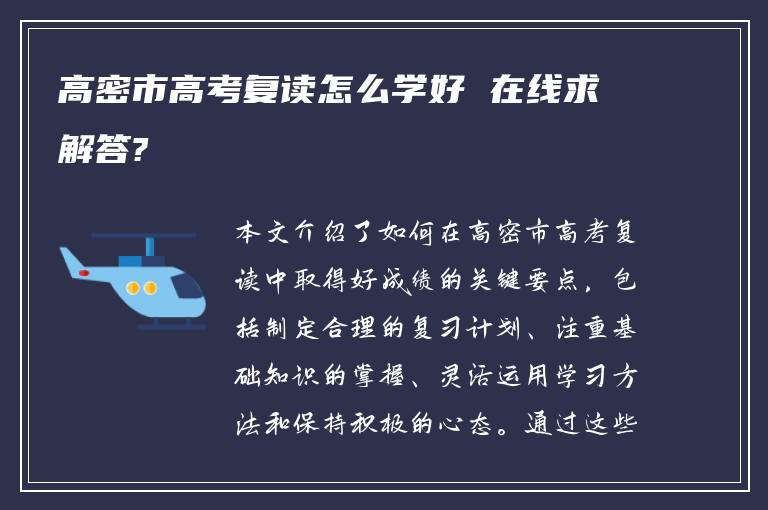 本文导读:本文介绍了如何在高密市高考复读中取得好成绩的关键要点,包括制定合理的复习计划、注重基础知识的掌握、灵活运用学习方法和保持积极的心态。通过这些方法,希望学生们能够在复读期间取得优异的成绩,实现自己的梦想。
