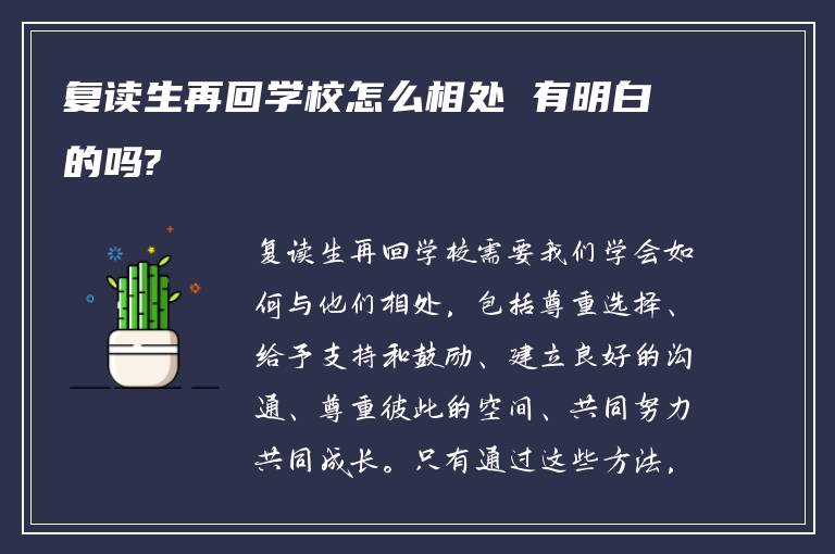 对于复读生再回学校,我们需要学会如何与他们相处。以下是一些建议: