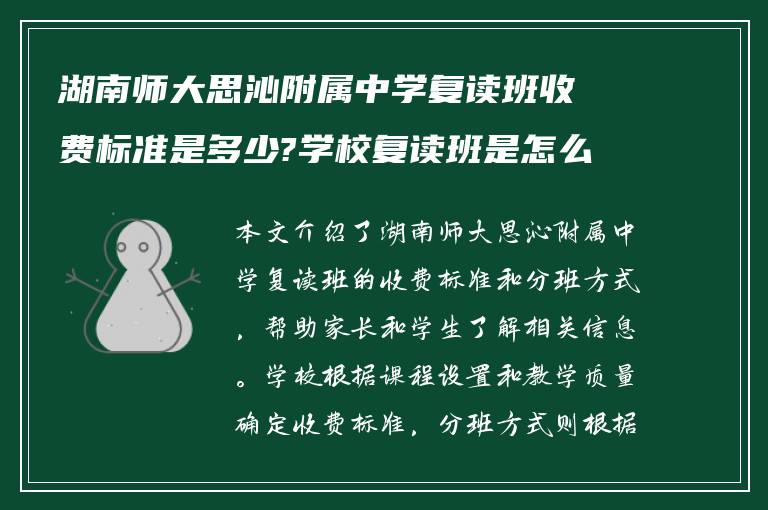 湖南师大思沁附属中学复读班收费标准及分班方式