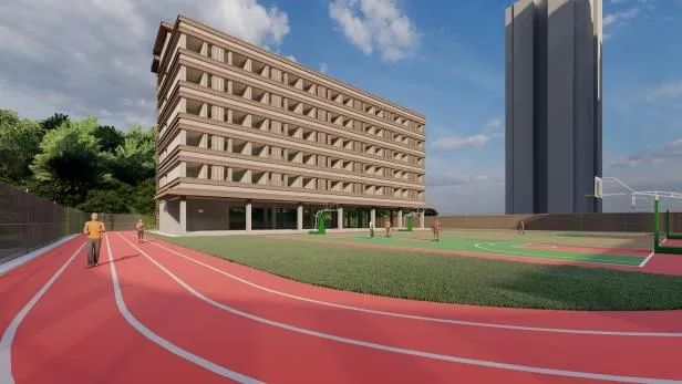 这是美丽的校园。绿树成荫,花草怡人。长长的环道,拥护着办公区、教学区、运动区和生活区,步步走高。楼宇鳞次栉比,校园总建筑面积近4万平方米,可以容纳60个教学班。